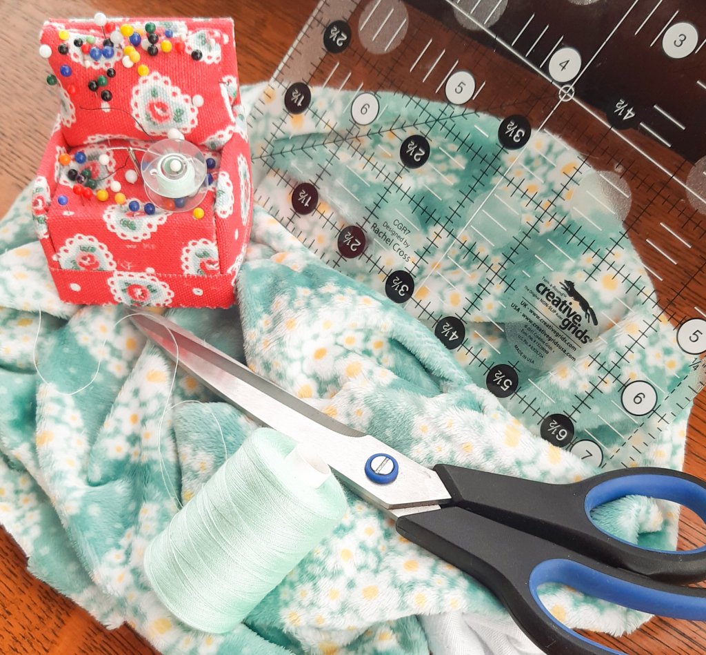 Sharp scissors, measuring tape/ruler, matching thread, pins, sewing machine with regular presser foot. Needles, if you fancy sewing it by hand.