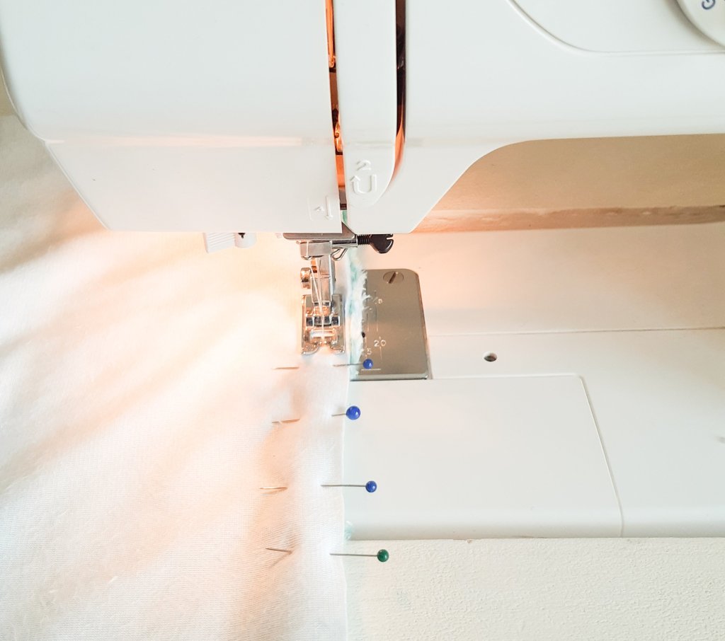 7. Insert the unpinned end into the pinned opening until the two raw edges meet. Pin in place.