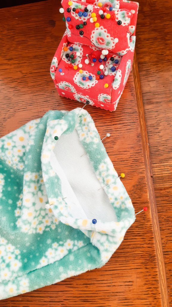 When she was one, I sewed her a wee coat with a super soft mint minky lining I had bought from Plush Addict. The leftovers have been in my cupboard ever since and this cosy project is perfect for using up what remains.