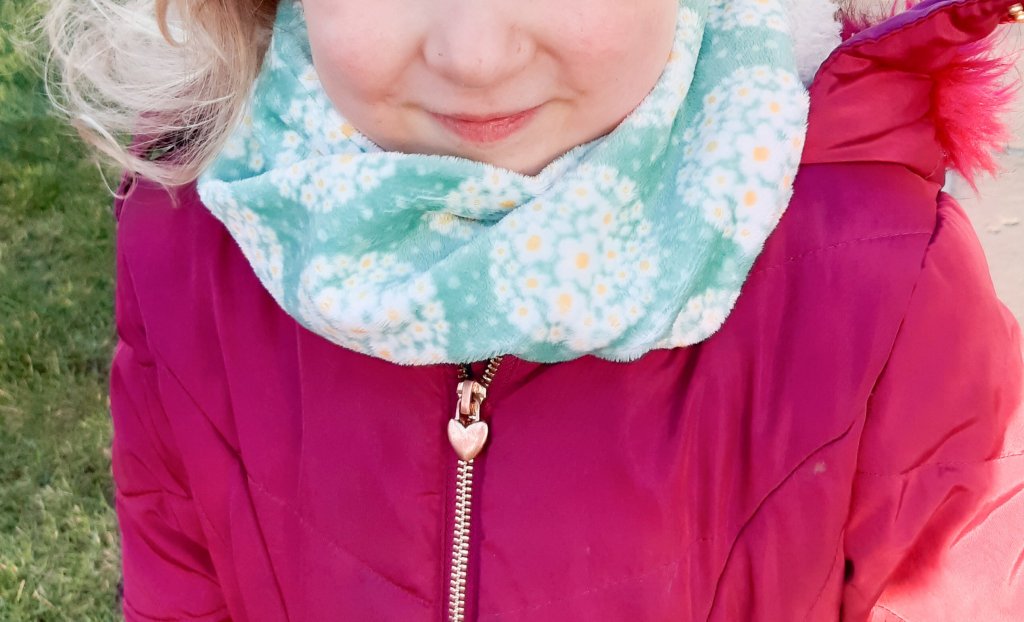 As per usual, I thought “I have fabric in the cupboard, I can make her one instead”. So here we are with this cosy twist snood tutorial!