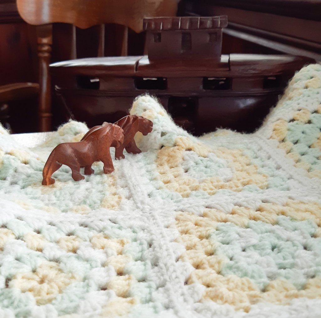 I have made a grand total of five crochet blankets in my life, 4 small baby ones for my children (when I was pregnant with them) and one larger one, my first project, naturally… take my advice and start on a baby blanket! My Mum taught me the basics when I was 19, and she’d been taught by her mother. I love these connections and memories.