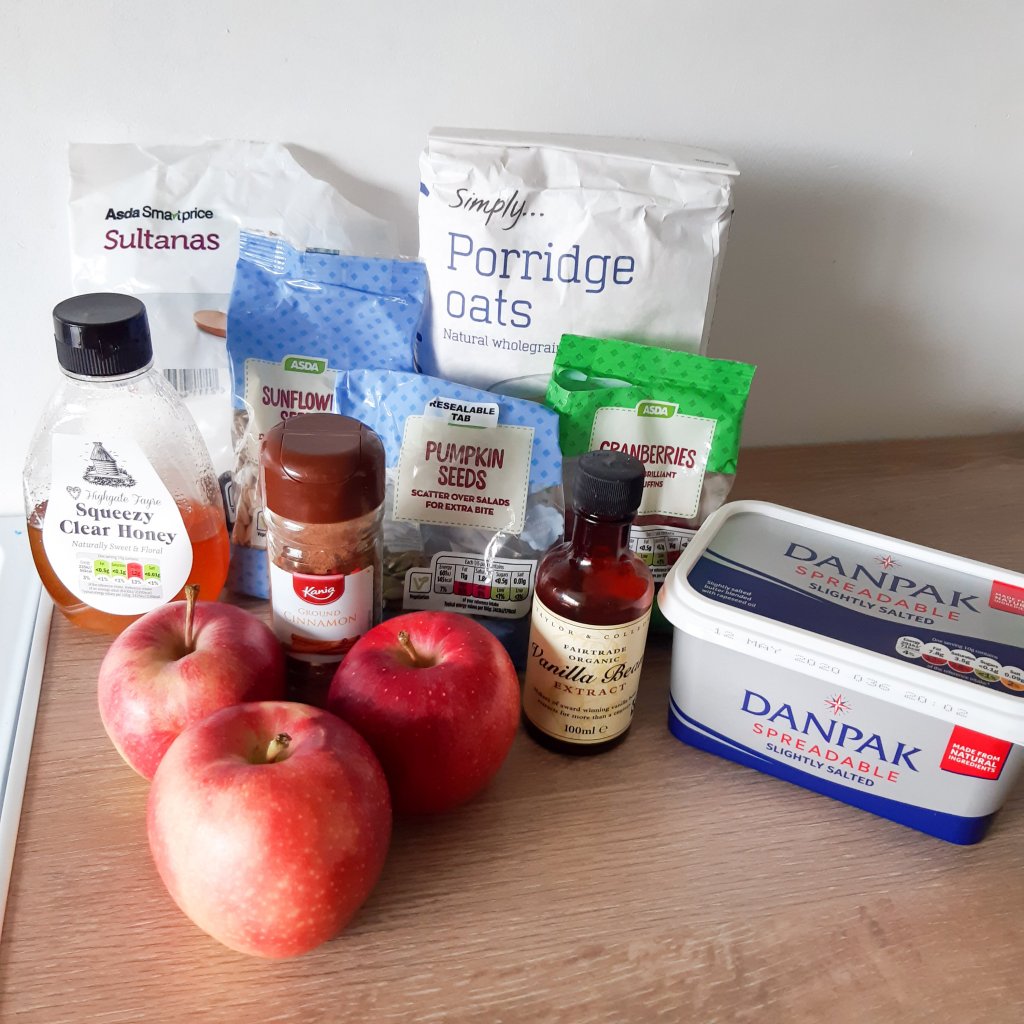 I don’t know about you, but there’s always requests for snacks in this house, even 10 minutes after having just eaten! Since I don’t want to fill the kids up with chocolate and sugar but nothing of substance, I like to keep an eye out for good snack recipes. I’ll be honest, I haven’t found that many but these oat bars are always a hit. The original recipe is on the Lidl website and is easy and adaptable. Today, I’m sharing an apple version with a few wee tweaks.